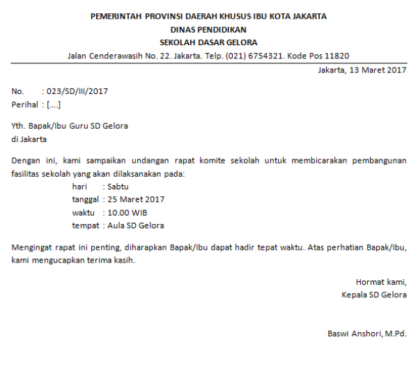Adapun tujuan penggunaan surat resmi sekolah tergantung dari isinya, seperti undangan rapat untuk orang tua siswa. Undangan rapat komite 2016 website resmi sman 2 cibinong. Karena surat undangan bersifat resmi, maka ada beberapa hal yang perlu diperhatikan. Setiap sekolah akan seringkali mengadakan rapat banyak hal yang harus diputuskan dengan mempertimbangkan hasil keputusan rapat baik itu untuk kenaikan siswa pembagian tugas guru dalam mengajar penerimaan siswa baru keuangan. Surat undangan rapat komite sekolah dibuat oleh staf tata usaha sekolah (tu).